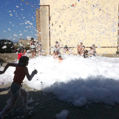 Divertidísima actividad dirigida a personas entre 0 y 99 años. El único requisito indispensable es que no haga frío, y disponer de una boca de riego cerca de donde se realice la actividad. Lo demás lo pone el equipo de IMAGÍNATE.