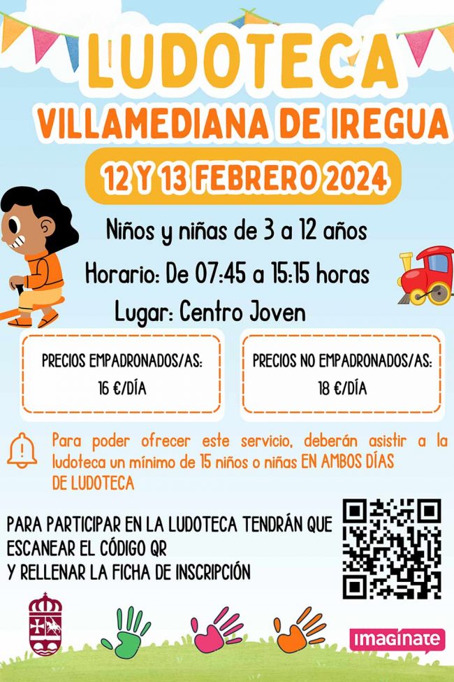Ludoteca 12 y 13 de febrero en el Centro Joven de Villamediana Fecha: 12 y 13 de febrero de 2024. Horario: de 7:45 a 15:15 h. Lugar: Centro Joven de Villamediana de Iregua Para niños y niñas de edades comprendidas entre 3 y 12 años. Precios empadronados/as: 16€ al día. Precios no empadronados/as: 18€ al…