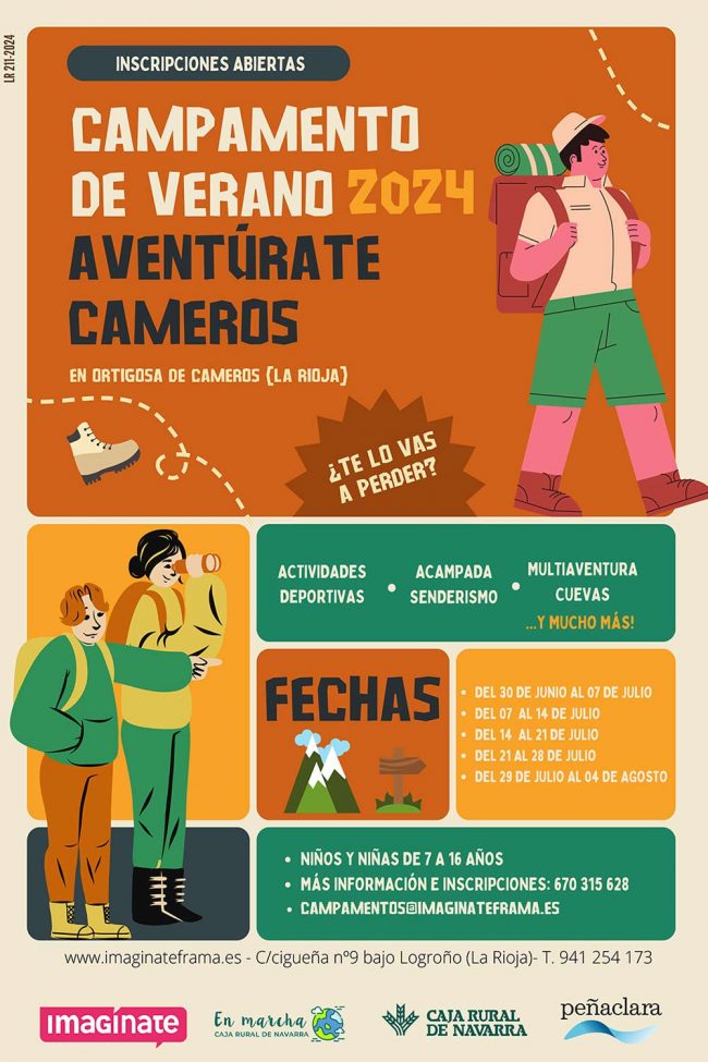 Campamento de verano, Aventúrate Cameros 2024 ¿Te lo vas a perder? Ya están las inscripciones abiertas para el campamento de verano «Aventúrate Cameros» en Ortigosa de Cameros (La Rioja), para niños, niñas y jóvenes de entre 7 y 16 años. Durante una semana se combinaran actividades de aventura con actividades de ocio en un entorno…
