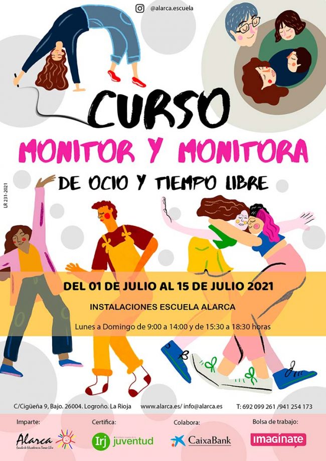 Curso de Monitor y Monitora de Ocio y Tiempo Libre, que se impartirá desde el 9 de julio al 30 de julio de 2021 en Calahorra.