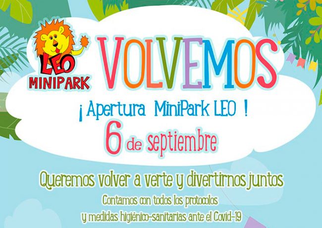 ¡Minipark Leo reabre sus puertas! El 6 de septiembre volvemos a abrir el Minipark Leo. Queremos volver a verte y divertirnos juntos. Celebra tus cumpleaños y tus fiestas seguro, ya que contamos con todos los protocolos y medidas higiénico-sanitarias frente al Covid-19. ¡La misma diversión de siempre, te esperamos!