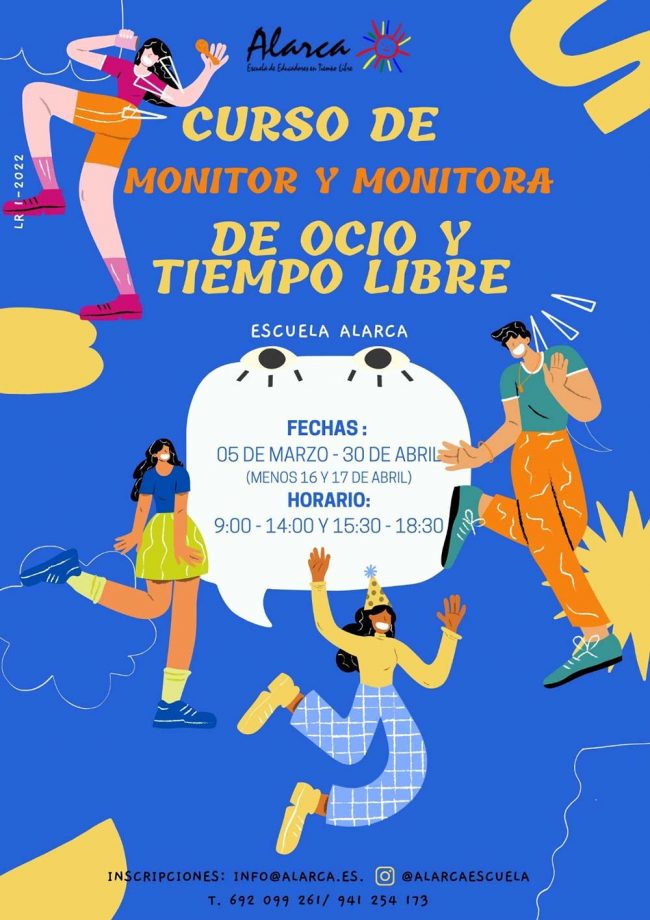 Curso de Monitor y Monitora de Ocio y Tiempo Libre, que se impartirá desde el 5 de marzo al 30 de abril de 2022, en las instalaciones de Escuela Alarca.