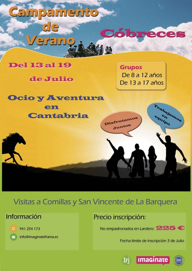 Apúntate al campamento de verano en Cóbreces, Cantabria. Destinado a niños/as y jóvenes de entre 8 y 17 años. Se realizarán actividades de ocio y aventura en un marco natural y en un entorno enriquecedor, motivador y divertido.